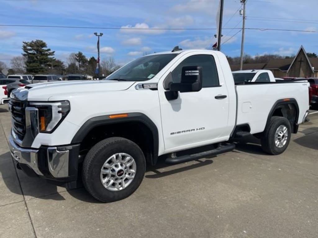 Summit White 2025 GMC Sierra 2500HD Pro 2D Standard Cab, Long Box Bed, 6.6L V8 Engine, 10-Speed Automatic Transmission, 4 Wheel Drive Truck.