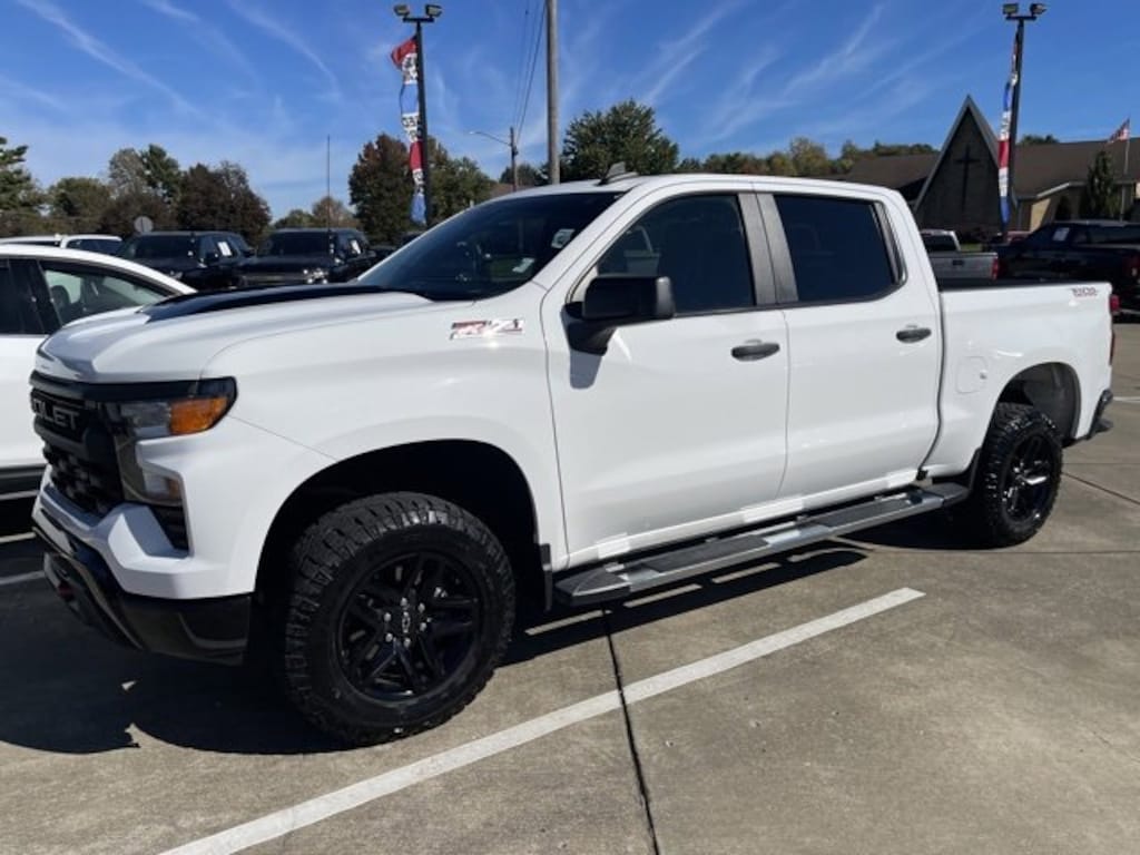 PLEASE, BRING YOUR TRADE AND TEST DRIVE THIS USED SUMMIT WHITE 2022 CHEVROLET SILVERADO 1500 CUSTOM TRAIL BOSS Z71 CREW CAB 4X4 PICKUP TRUCK THAT IS EQUIPPED FOR YOUR COMFORT AND CONVENIENCE AND HAS ADVANCED SAFETY AND CONNECTIVITY OPTIONS PLUS A TRAILER TOWING PACKAGE. STOP BY TODAY AND DISCOVER MORE. ONE OWNER, FREE CARFAX REPORT.