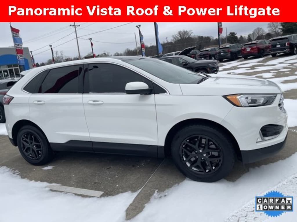This Edge comes equipped with Heated Front seats, Heated Steering Wheel, Illuminated Entry, Panoramic Vista Roof, Perimeter Alarm, Power Liftgate, Power Windows, Remote Keyless Entry, Remote Start, SecuriCode Keyless Entry Keypad, Universal Garage Door Opener (UGDO), 110V/150W AC Power Outlet, ActiveX Seating Material Heated Bucket Seats, AM/FM radio: SiriusXM with 360L, Convenience Package, Equipment Group 201A & Fog Lamps w/Chrome Bezel & Wireless Charging Pad. This Edge SEL delivers 21/28 City/Highway MPG. CARFAX One-Owner Verified. Odometer is 5924 miles below market average!