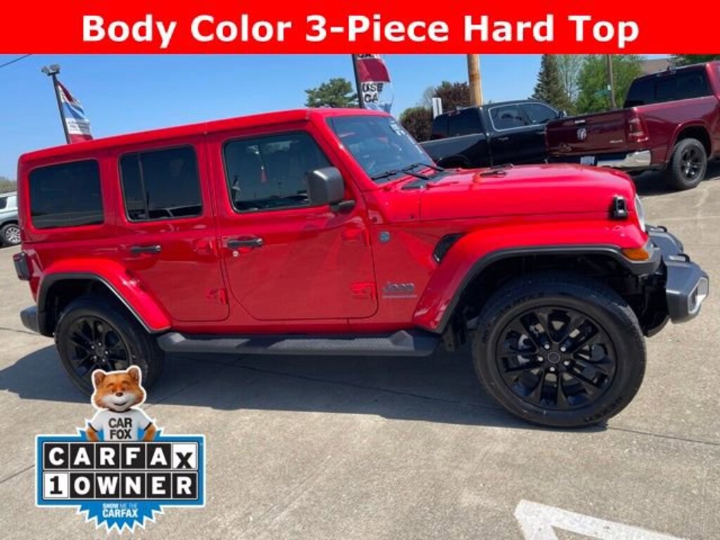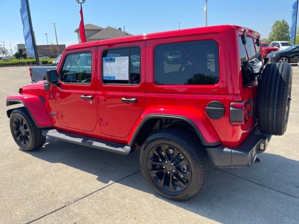 Finished in the striking Firecracker Red Clearcoat, this Wrangler Sahara 4xe is a true head-turner. But the real magic lies under the hood, where a potent 2.0L I4 DOHC engine and 8-Speed Automatic transmission deliver the perfect blend of power and efficiency.